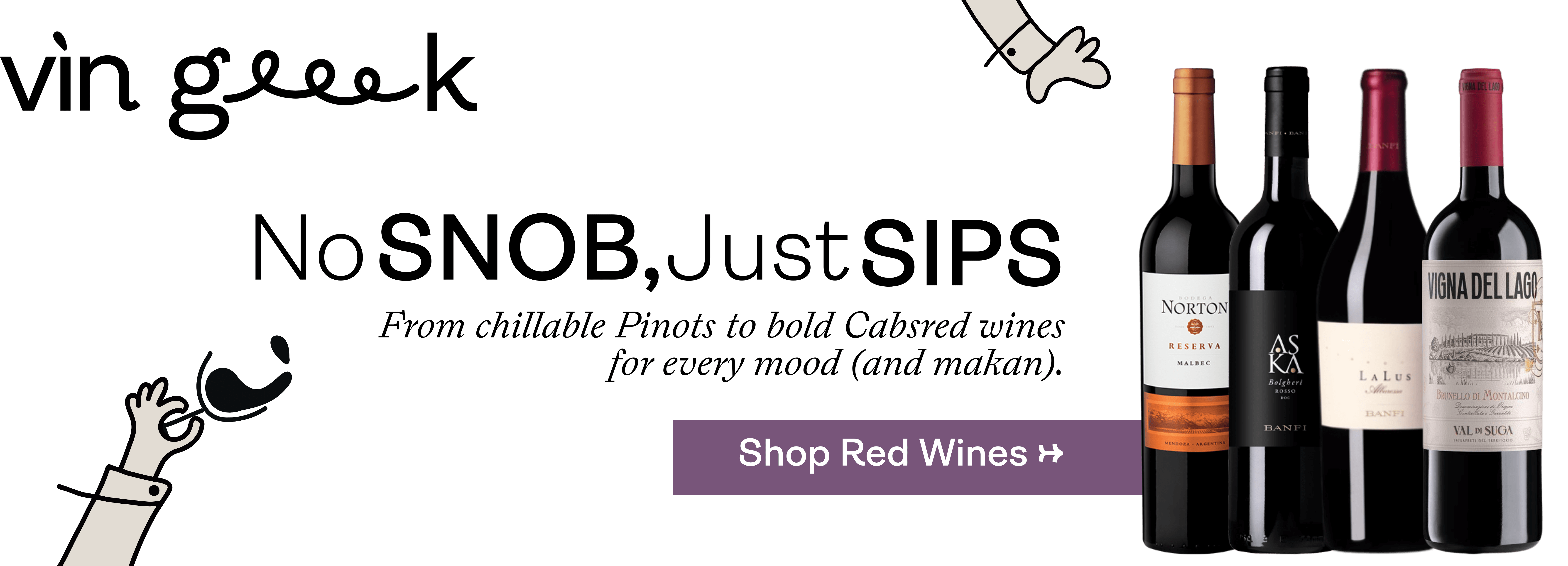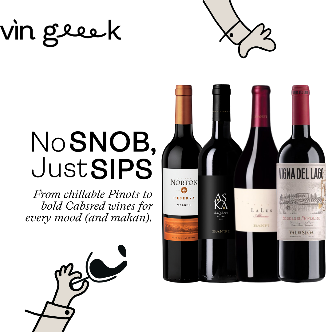 From silky Pinot Noir to in-your-face Cabernet, our red wine collection at Vin Geek is all about flavour, character, and serious drinkability — no wine snobbery here, okay?